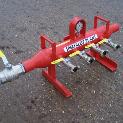 - Free-standing manifold – 2-inch inlet/outlet with pressure gauge.